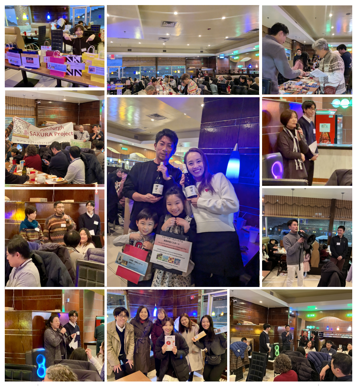 実施後のアンケートでは「当日はとても楽しかったです」「食べ物の種類が多く、わいわい和やか雰囲気でとてもいい時間が過ごせました」「時間配分もちょうど良かったと思います」「また来年も楽しみにしております」「初めましての方と少し会話することもでき楽しい時間を過ごすことができました」「ピッツバーグにお住まいの日本人と知り合う、良い会でした」「料理も種類が多く、ラッフルなど盛り上がりポイントも準備されており、満足度の高い会でした」「I can see that young people worked hard for this.」「全体的には大変楽しく有意義な時間を過ごさせて頂きまして感謝致します」等々、開催担当者にとって嬉しいご感想を頂きました。一方で、「マイクでのご案内がよく聞こえなかったのは残念です」「他の会場での開催は可能か?」などのご指摘もいただきました。また、今回の天候不良で遠方からお越しいただくことが困難でキャンセルされたご家族もいらっしゃり、今後の課題とさせていただきます。